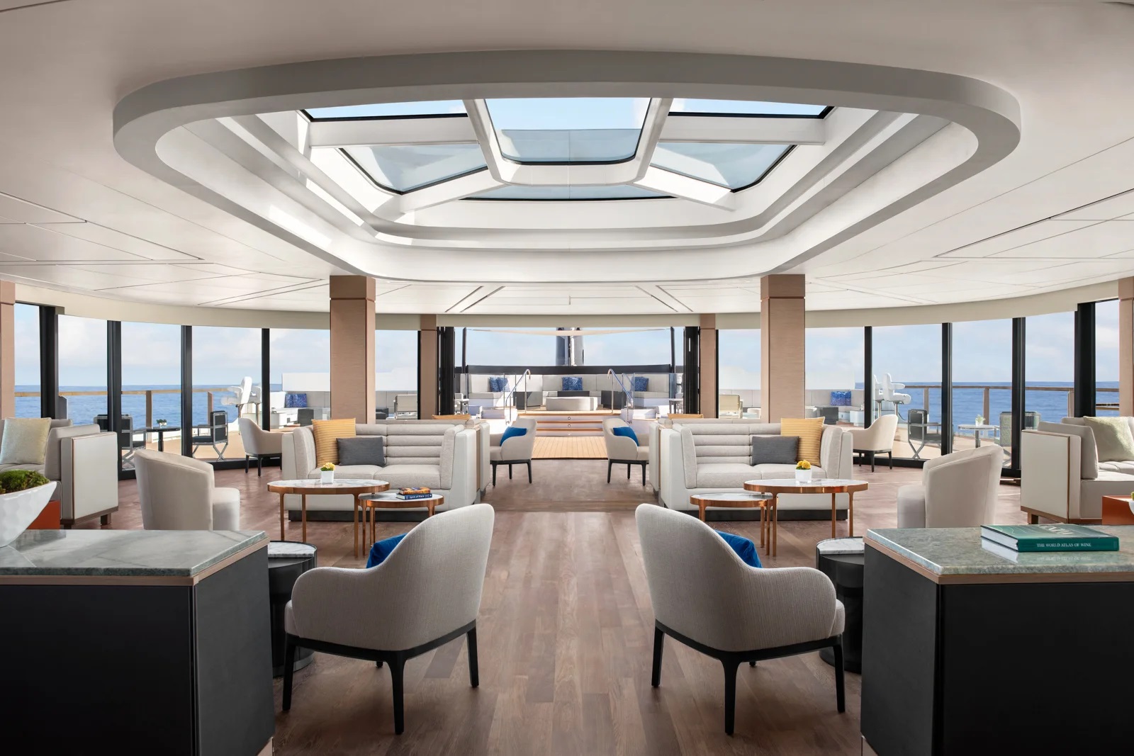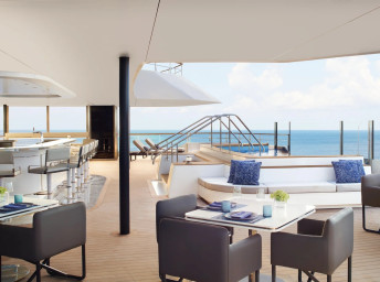 Ďalší lounge priestor Marina Terrace je bližšie k vodnej hladine pri lodnej marine na korme. A nechýba ani lodné spa s fitnes centrom.