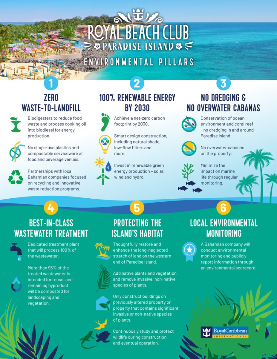 V apríli 2023 prezident a CEO spoločnosti Royal Caribbean International Michael Bayley hovoril o potrebe zlepšiť ponuku pobrežných výletov v destinácii Nassau. Za týmto účelom sa Royal Caribbean spojila s bahamskou environmentálnou firmou SEV Consulting Group, ktorá dohliada na environmentálne aspekty nového projektu. Spolupráca zaručí, že výstavba a prevádzka takmer 9-hektárového pozemku na pláži v Nassau budú v súlade s miestnymi a medzinárodnými environmentálnymi normami. Komplexný plán udržateľnosti zahŕňa ochranu hniezdísk morských korytnačiek a starostlivé odstraňovanie inváznych druhov.